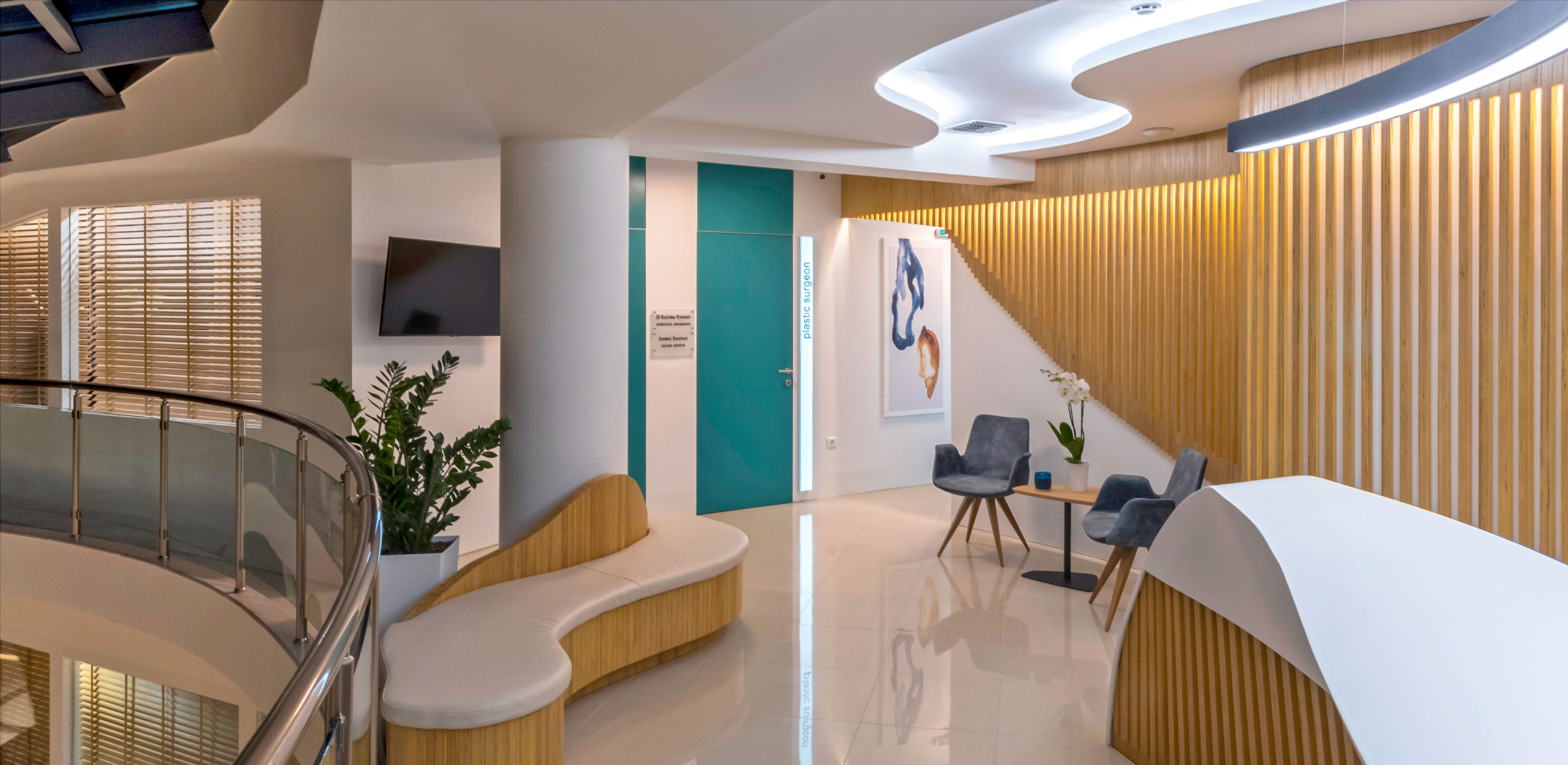 Departamenti funksionon në një ambient modern, me estetikë dhe funksionalitet të lartë. Salla e pritjes ofron një ambient të këndshëm për një pritje relaksuese, ndërsa ambientet janë komode dhe të pajisura me aparaturat më moderne të dermatologjisë klinike dhe kozmetike.